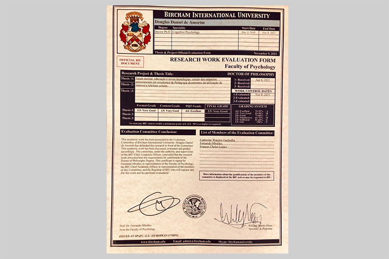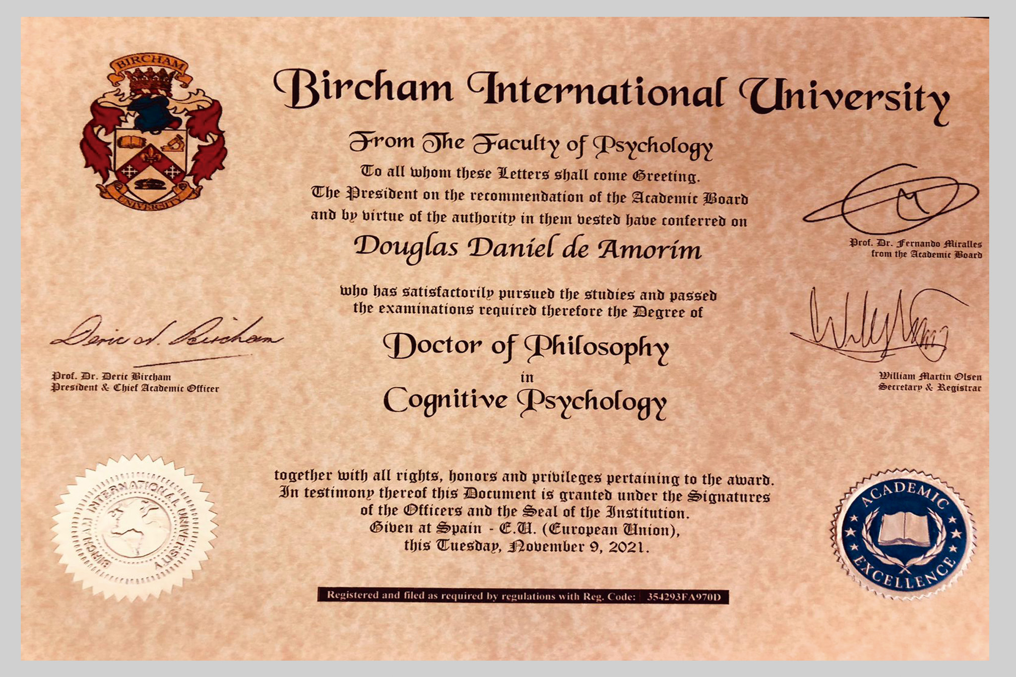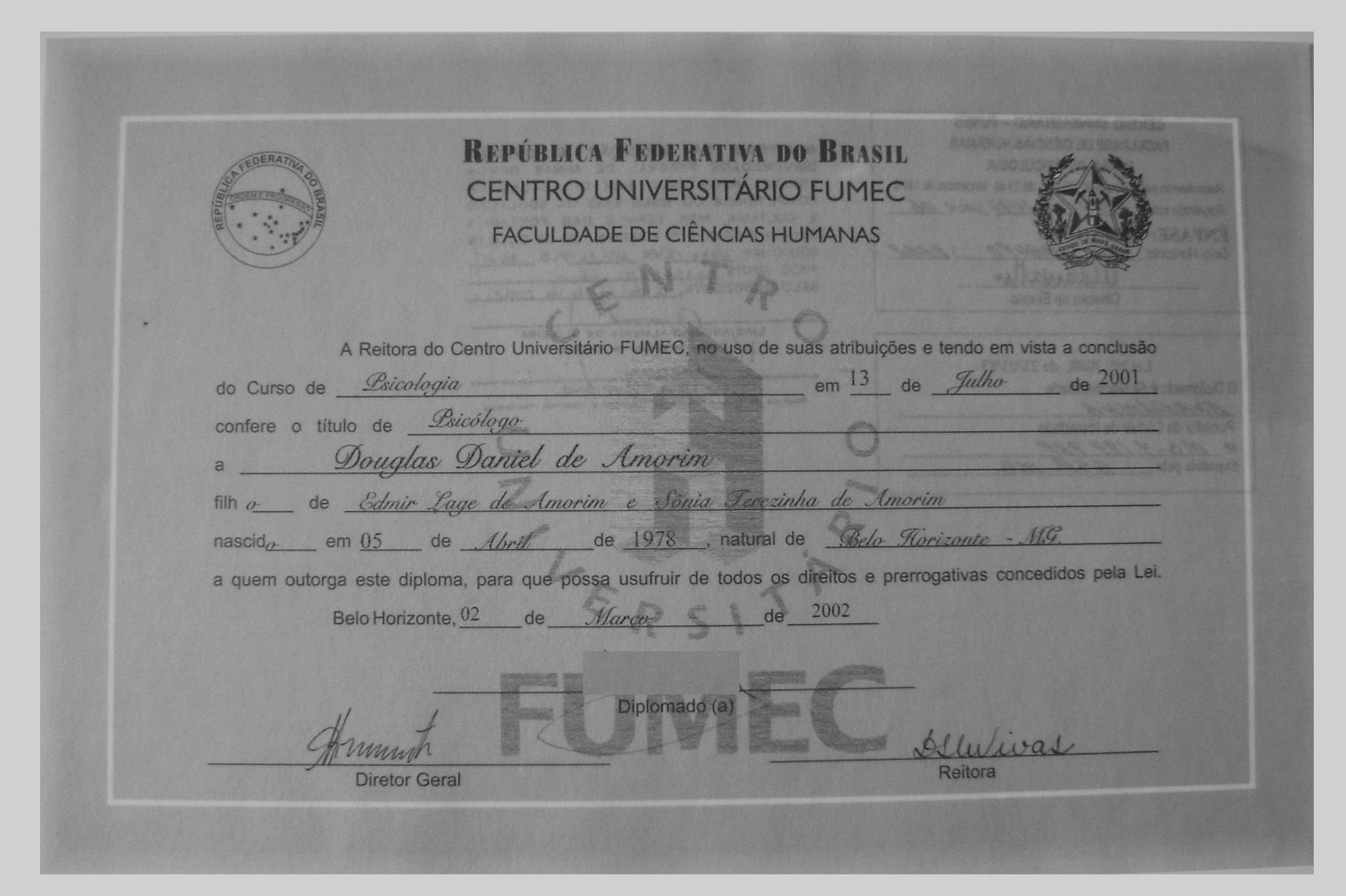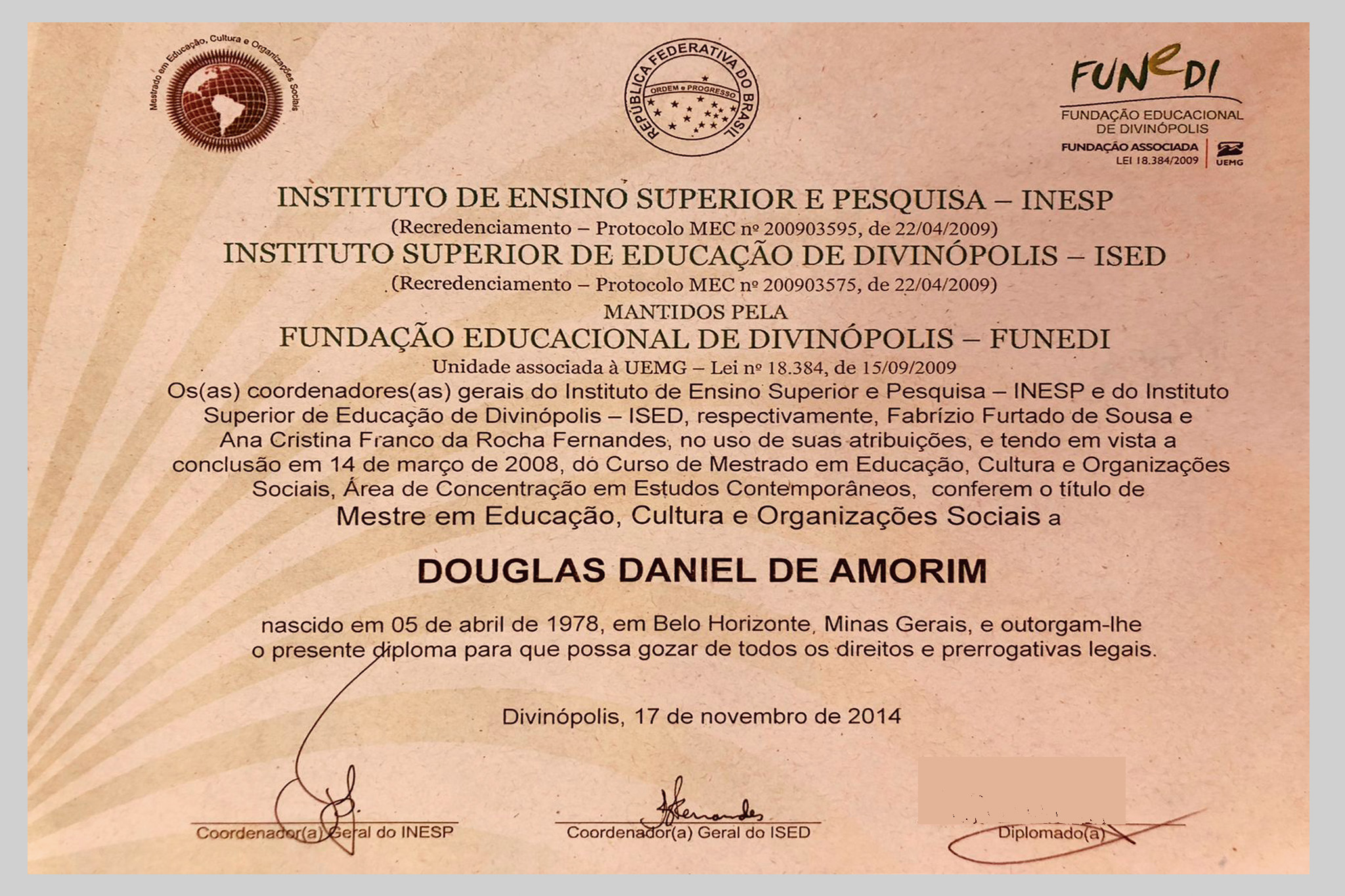 Após concluir minha graduação, participei do processo seletivo para fazer Pós-graduação em Psicologia Médica, pelo departamento de Psiquiatria e Neurologia da Faculdade de Medicina da Universidade Federal de Minas Gerais (UFMG) e fui aprovado. Após dois anos de curso, resolvi que gostaria de realizar um estudo em nível mais aprofundado. Foi então que resolvi participar da seleção para o Mestrado em Educação, Cultura e Organizações Sociais da Universidade do Estado de Minas Gerais (UEMG). A ideia de fazer um Mestrado fora da Psicologia foi estratégica. Depois de estudar tanto os mecanismos psíquicos do ser humano, desta vez, quis estudar como a cultura e a sociedade, poderiam interferir no comportamento das pessoas. Fui selecionado em segundo lugar, obtendo 378 pontos, dos 400 possíveis, no ano de 2005 e finalizei-o em março de 2008. Minha dissertação de Mestrado foi sobre violência contra a mulher pode ser baixada aqui no site. Basta clicar nela para ter acesso ao seu conteúdo integral, em pdf. Em meados de 2016 ingressei no Doutorado em Psicologia Cognitiva pela Bircham International University, da Espanha. Desta vez meu tema de pesquisa foi voltado para o vício em internet e telefone celular, e seu conteúdo, assim como o da dissertação, pode ser baixado aqui no site, no link específico. Também estão exibidas logo abaixo, as atas da defesa do Mestrado e do Doutorado.